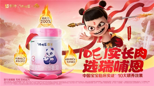基于此,蒙牛与《哪吒2》建立了深度合作。据悉,在确立合作身份后,蒙牛迅速针对全品线全渠道进行了部署,从定档,到预告片官宣、影片上映、票房破亿,均提前做好设计和规划,涉及的旗下品牌更是广泛,包括蒙牛的大白奶、精选牧场、纯甄、花色奶、蒙牛大果粒、每日鲜语、蒙牛瑞哺恩奶粉等。