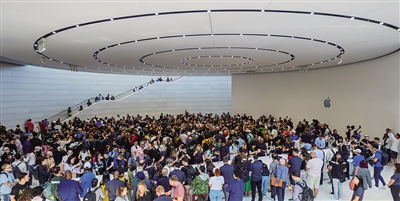 9月9日,在美国加利福尼亚州丘珀蒂诺市举行的苹果新品发布会后,人们体验新品。