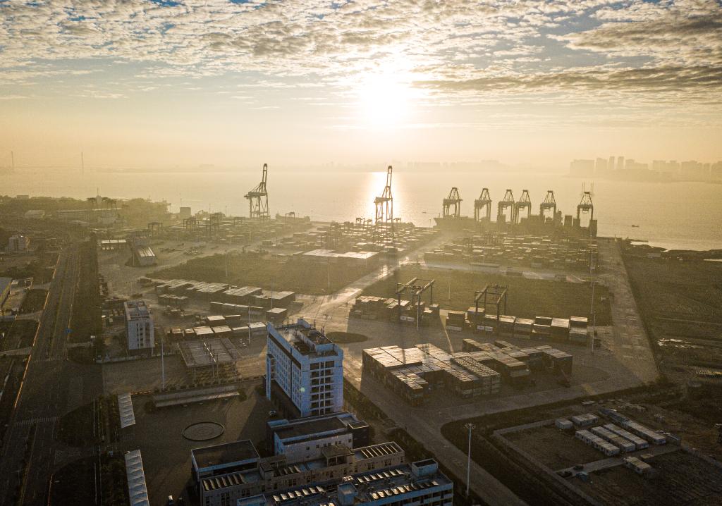 2024年1月1日在海南省洋浦经济开发区拍摄的海南自贸港集装箱航运枢纽——洋浦国际集装箱码头(无人机照片)。新华社记者 蒲晓旭 摄