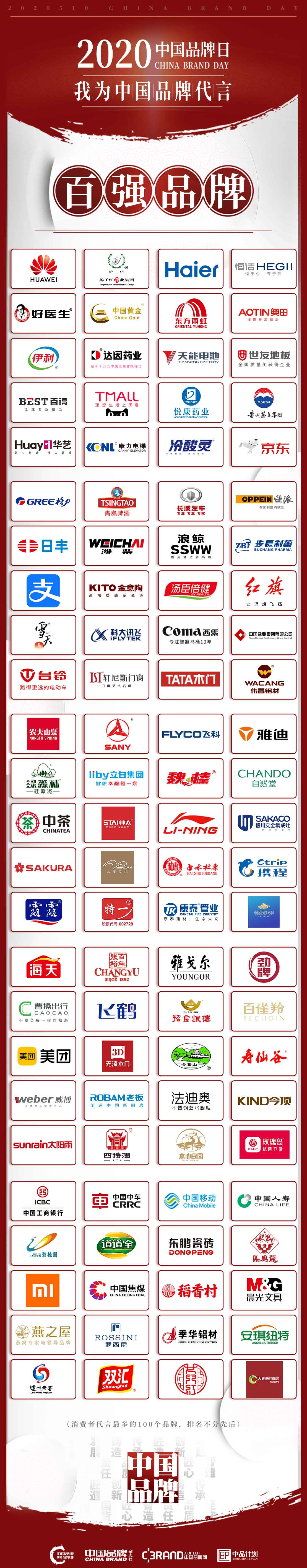 2020中国品牌日•我为中国品牌代言消费者代言最多的100个品牌
