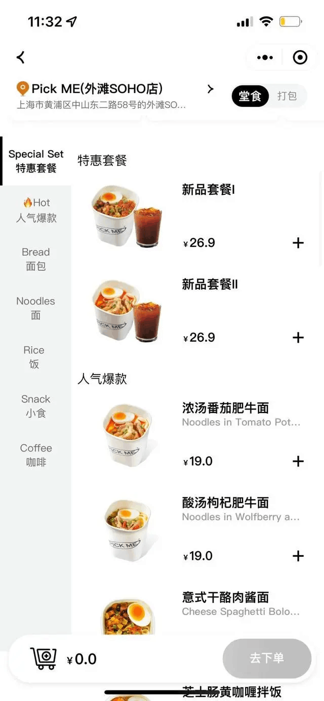 在经典店型中,和府捞面的客单价通常是50元左右,一碗捞面价格普遍超过32元。而在“Pick ME”同样的客单价可以吃一碗面、喝一杯咖啡再点一份小吃,解决了此前和府捞面被诟病的客单价高的问题。