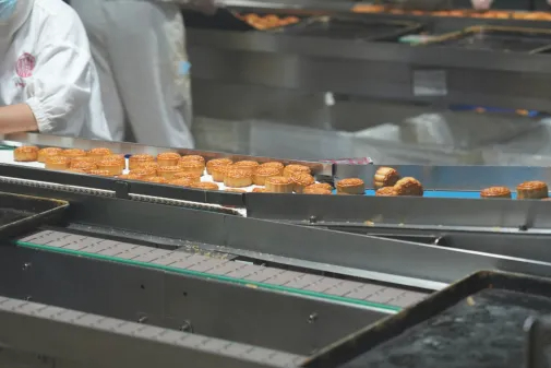 再有一个月,就到了中秋月饼销售的旺季,《中国品牌》杂志社一行在经过更衣、粘毛、洗手消毒、风淋等一系列严格操作后,进入月饼生产车间,看到月饼从成型、刷黄、烘焙、冷却到包装的全部工艺流程。