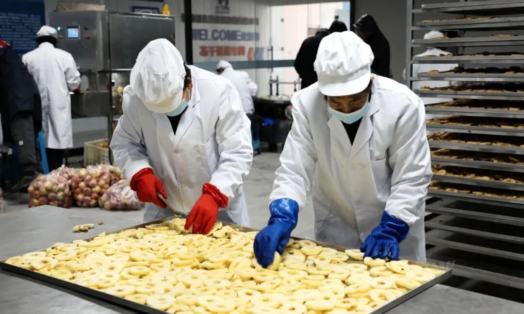 轰鸣的设备运转声中,山地苹果、沙地红薯、红枣等本地特色农产品经过清洗、削皮、切片、分拣、冻干等工序,变身成保留原汁原味的冻干食品,将从绥德走向更广阔的市场。